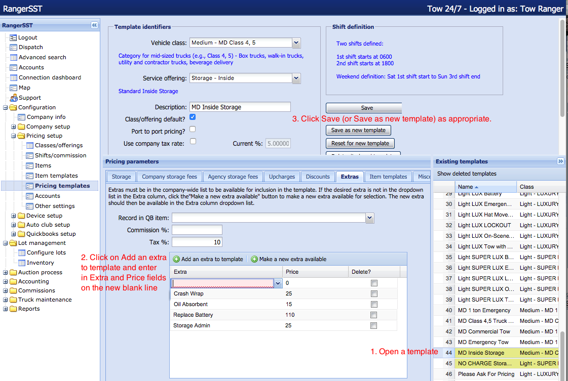 There are two ways to create “Extras,” which are additional charges that can be added to a storage job.
