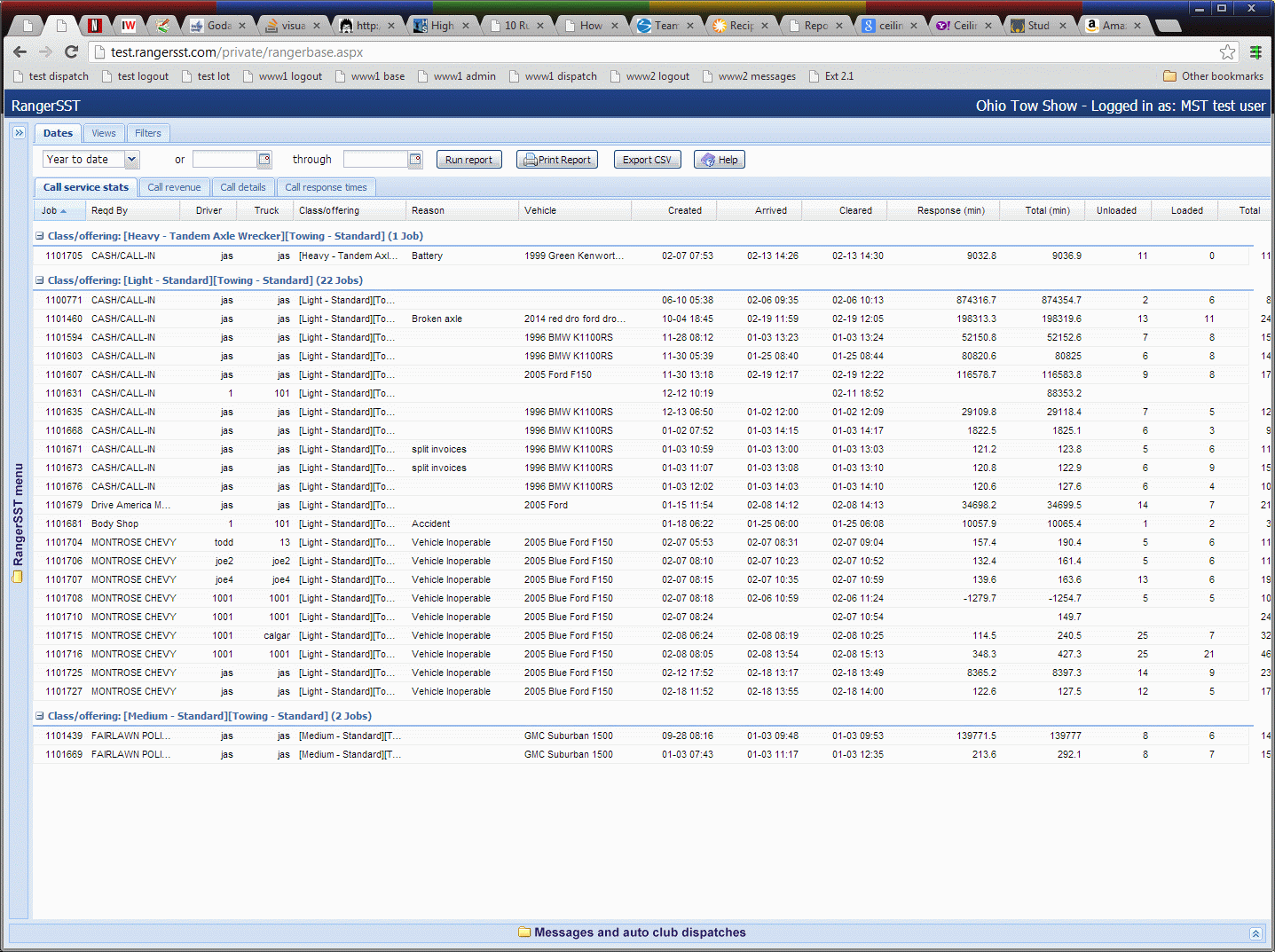 Call service stats: basic job data including account, driver and truck, and basic status data