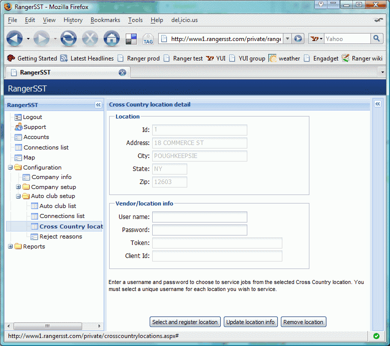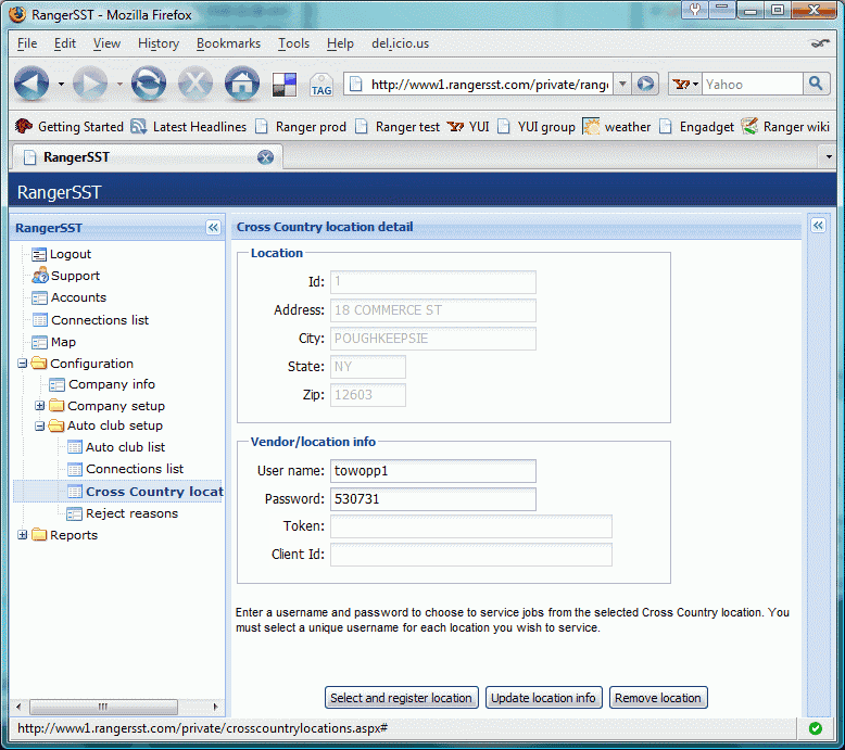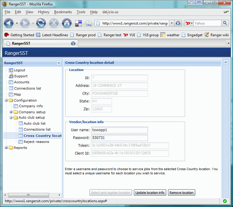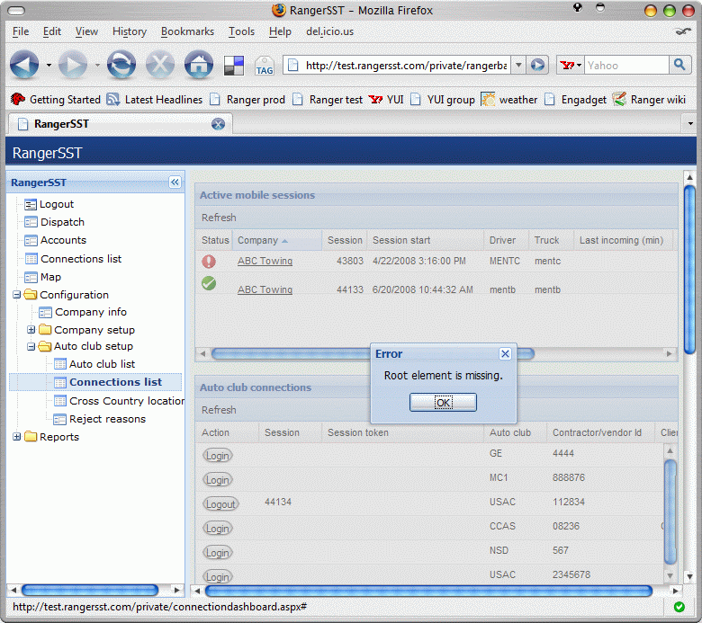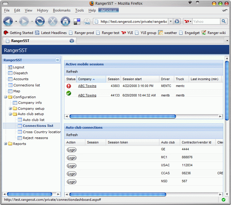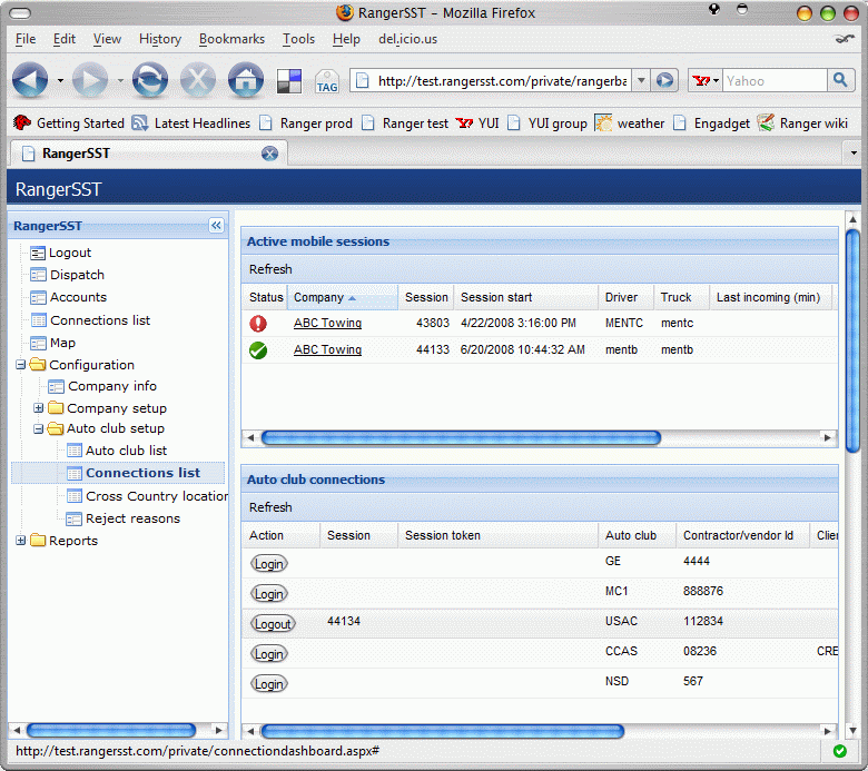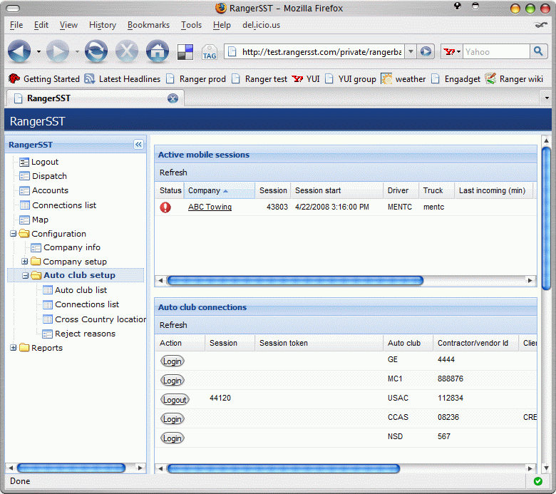 • For Tracker customers, Ranger automatically attempts to log on to auto club accounts whenever RangerService is started. However, there are situations in which the company must manage auto club connections outside the RangerService startup process. For example, DriveAmerica will forcibly log off a service provider that fails to respond to a dispatch in a timely manner.