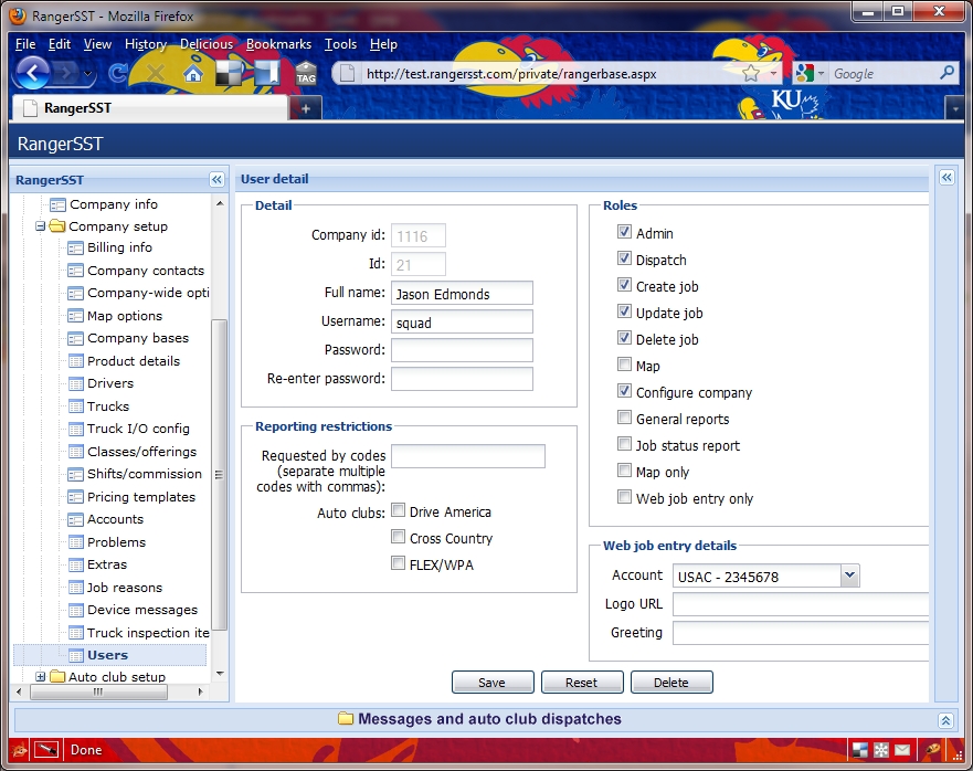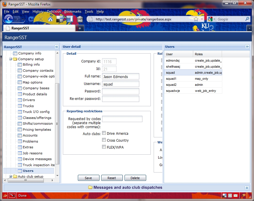 Ranger allows a company to set up any number of users, and specify different roles for each user. In this way, the company can customize usernames to specific jobs.