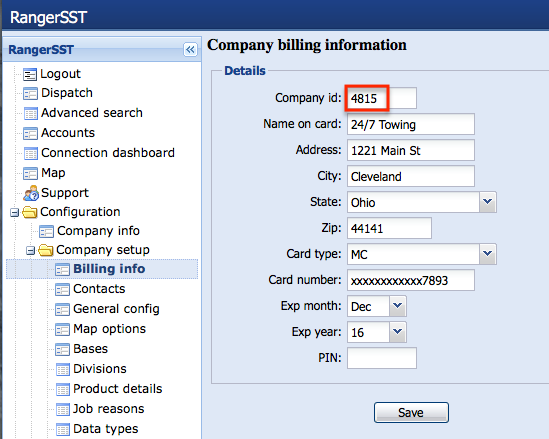 Go to the Main Menu and click on Configuration, Company set up, Billing and see the company number at the top.